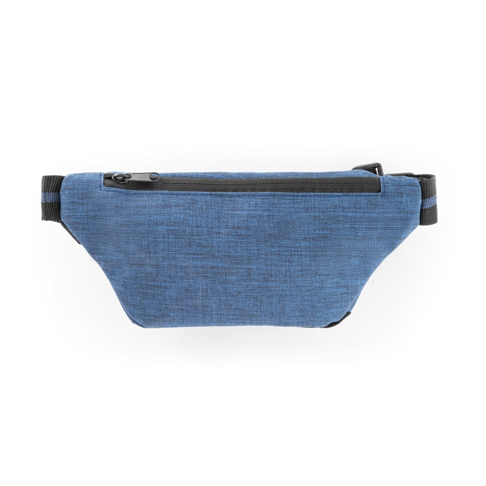 Waist pocket in high density 300D. Main compartment with zipper and inner pocket in elastic mesh. Back pocket with easy access, ideal for storing goods with greater security. Contains two front pockets, one with elastic mesh pocket, and an elastic on the side, suitable for hanging carabiners or sunglasses. The webbing strap is adjustable. 270 x 120 x 65 mm