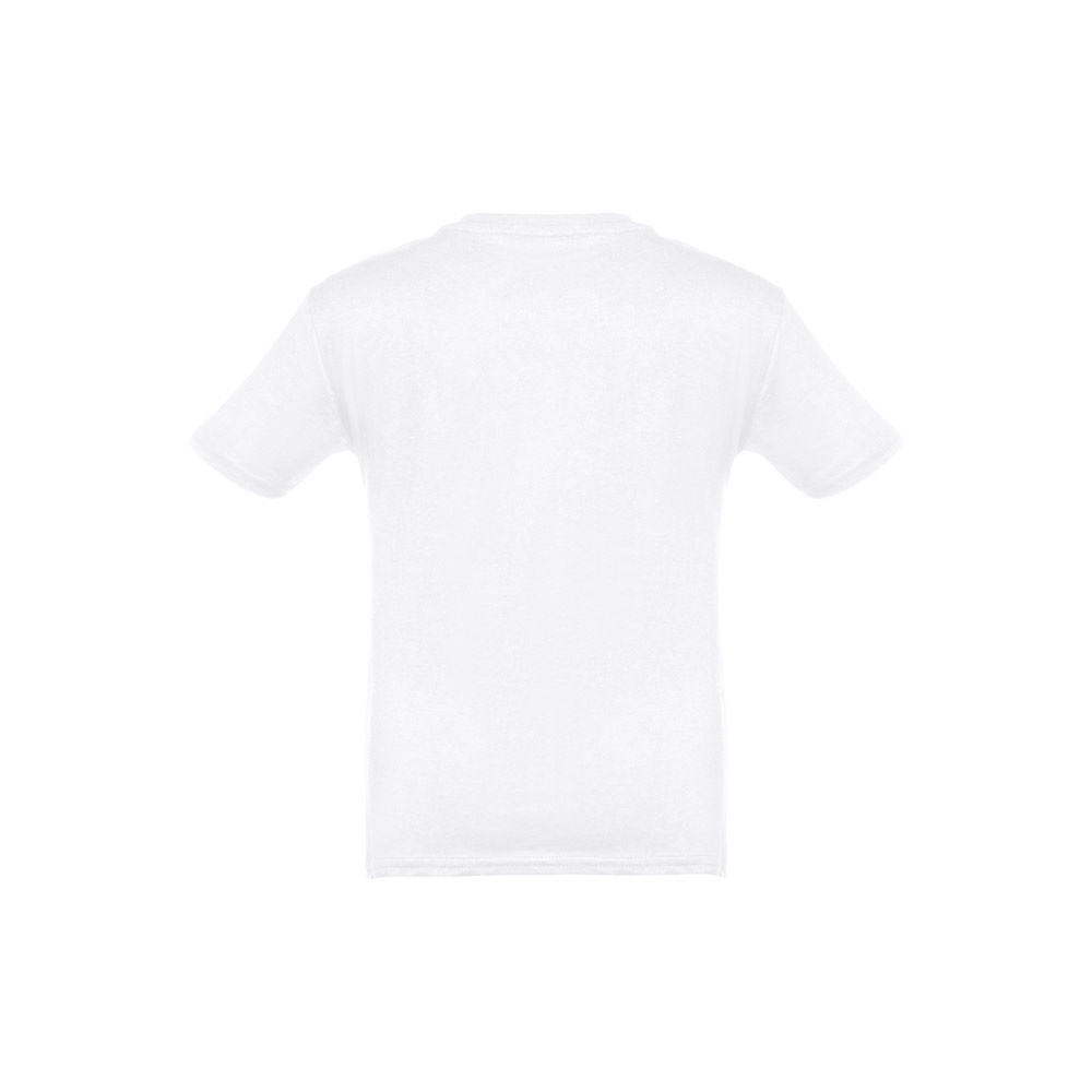 Kids’ T-shirt (unisex) in 100% carded cotton jersey (150 g/mยฒ). Contains a 1×1 Rib collar with jersey reinforcement bias tape. Cut and sewn garment, double stitched on the sleeves and hemline Sizes: 2, 4, 6, 8, 10, 12
